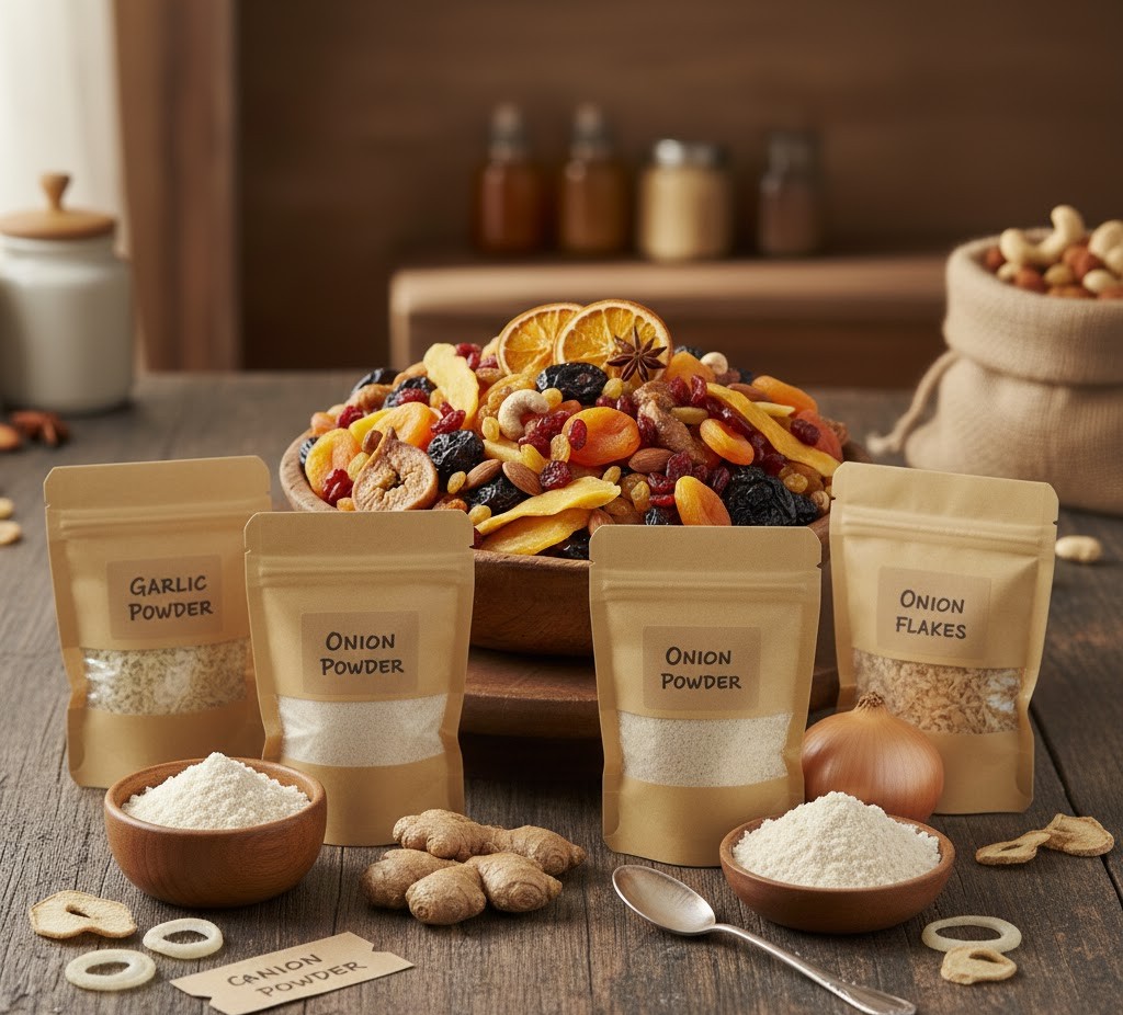 Pure Ingredients. Honest Taste. Everyday Essentials. Premium dehydrated products, authentic Indian spices, and quality dry fruits sourced and processed with care. Shop Now Explore Categories Quality Checked Hygienically Processed Pan-India Delivery Carefully selected essentials for everyday cooking and long-lasting freshness. Shop By Category Dehydrated Products Spices Dry Fruits Shipping Available Explore Products ! Dedicated Support Quick response 24/7 Quality Guarantee With Quality checks and tests , we provide you the best in class Spices and Dehydrated Products